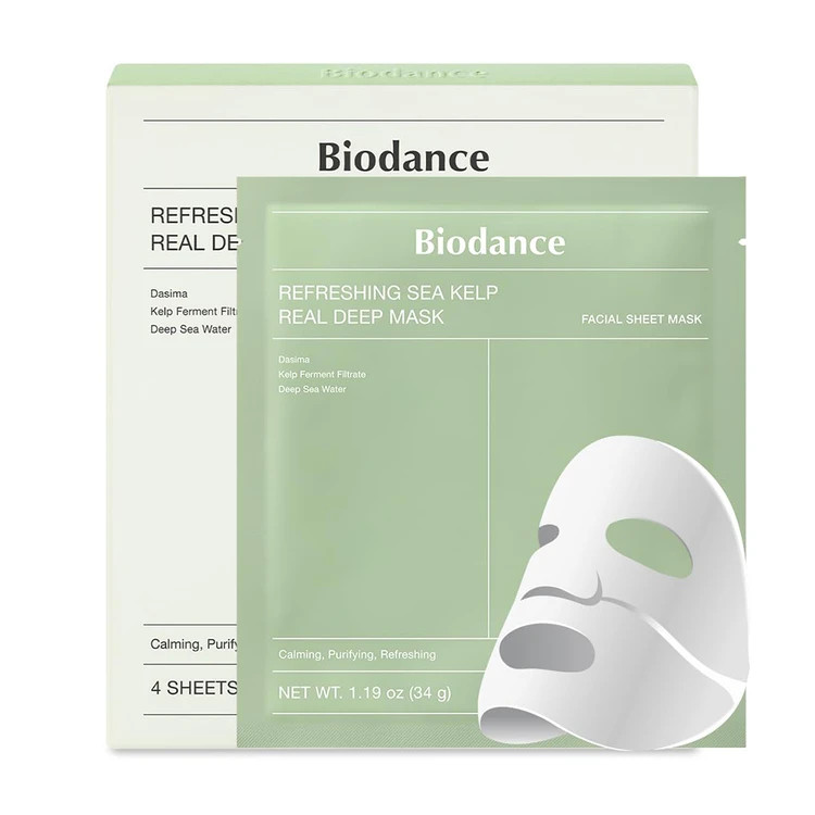 ماسک صورت ورقه ای تسکین دهنده جلبک دریایی بایودنس 4 عددی حجم 34 گرم