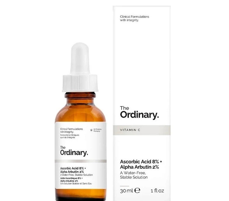 سرم آسکوربیک اسید 8% و آلفا آربوتین 2% اوردینری با حجم 30 میلی لیتر و محصول کانادا، یکی از موثر ترین سرم های روشن کننده پوست است. این سرم سرشار از ویتامین C خالص بوده و خاصیت آنتی اکسیدانی دارد و سبب محافظت از پوست می شود. سرم آسکوربیک اسید 8% + آلفا آربوتین 2% برند Ordinary با تقویت پوست، هر گونه علائم پیری و خطوط و چین و چروک ها را بهبود می دهد. این سرم لک ها و تیرگی های پوستی را به طرز چشمگیری کاهش داده و پوست را روشن و شفاف می کند.