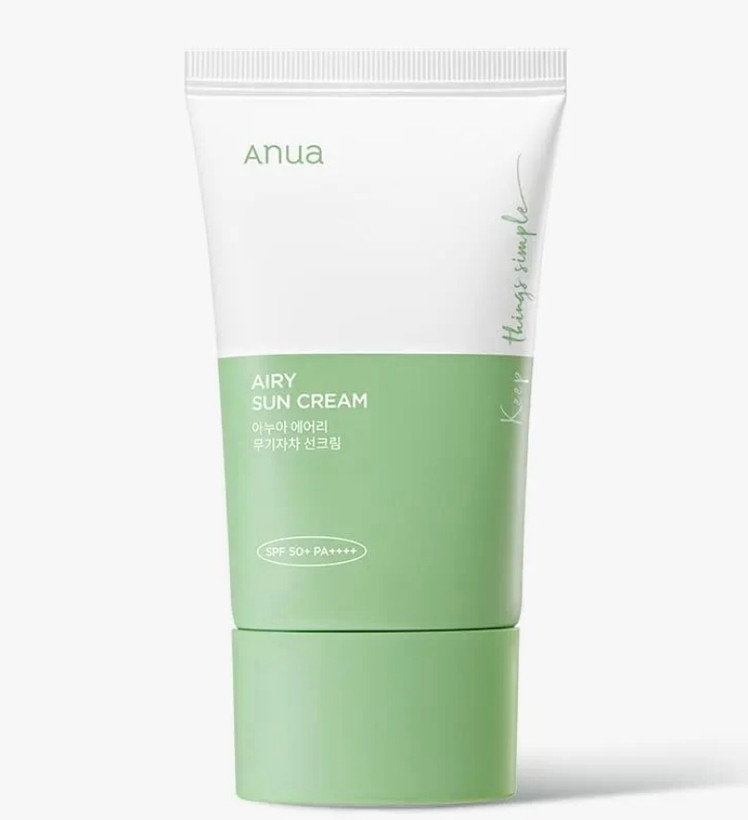 ضد آفتاب ANUA Airy Sun Cream با SPF50+، پوست را از اشعههای مضر محافظت کرده و همزمان با ترکیبات گیاهی تسکینبخش، التهابات را کاهش میدهد