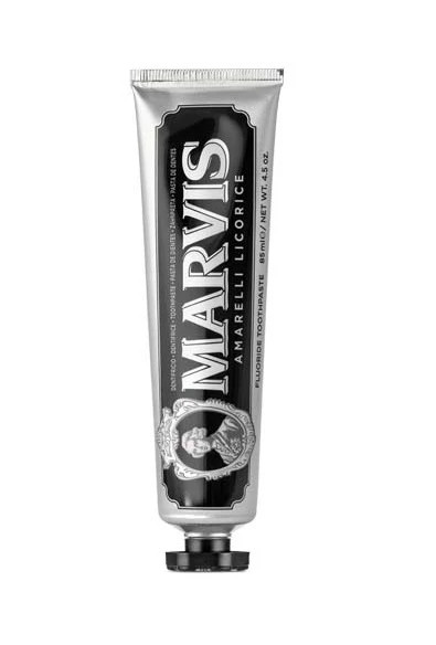 خمیر دندان شیرین بیان مارویس Marvis اصل حجم 85 میلی لیتر، یک خمیر دندان روزانه با مواد مینرال و بر پایه فلوراید مینای دندان را دوباره تقویت کرده و در برابر پوسیدگی محافظت می کند. این خمیردندان با هیدروکسید آلومینیوم و دی اکسید سیلیکون فرمول شده، که تمیز کردن کامل و ایمن را انجام می دهند. به دلیل خاصیت سفید کنندگی برای افراد سیگاری و قهوه دوست مناسب هستند و ذره ای به مینای دندان یا لثه آسیب نمیزنند. برای استفاده روزانه توصیه می شوند.